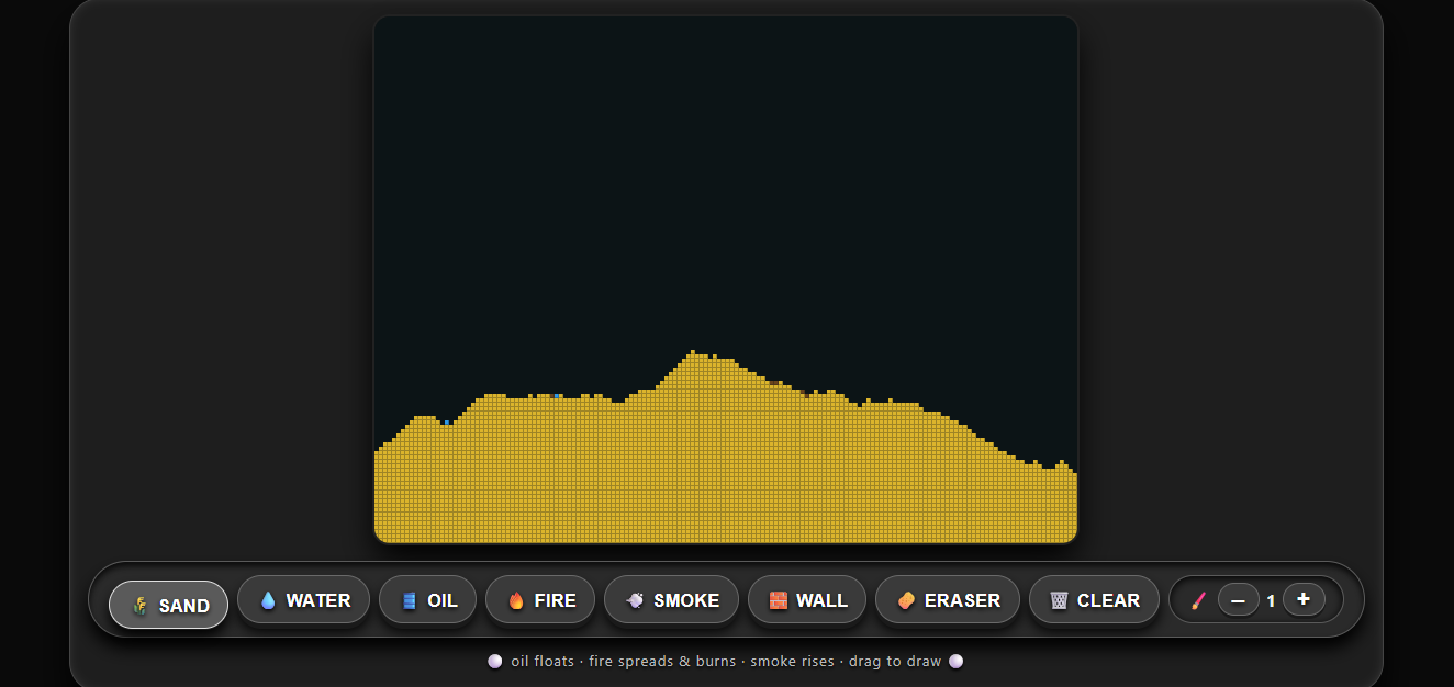 🌾 SAND – piles, flows, and sinks through water & oil.